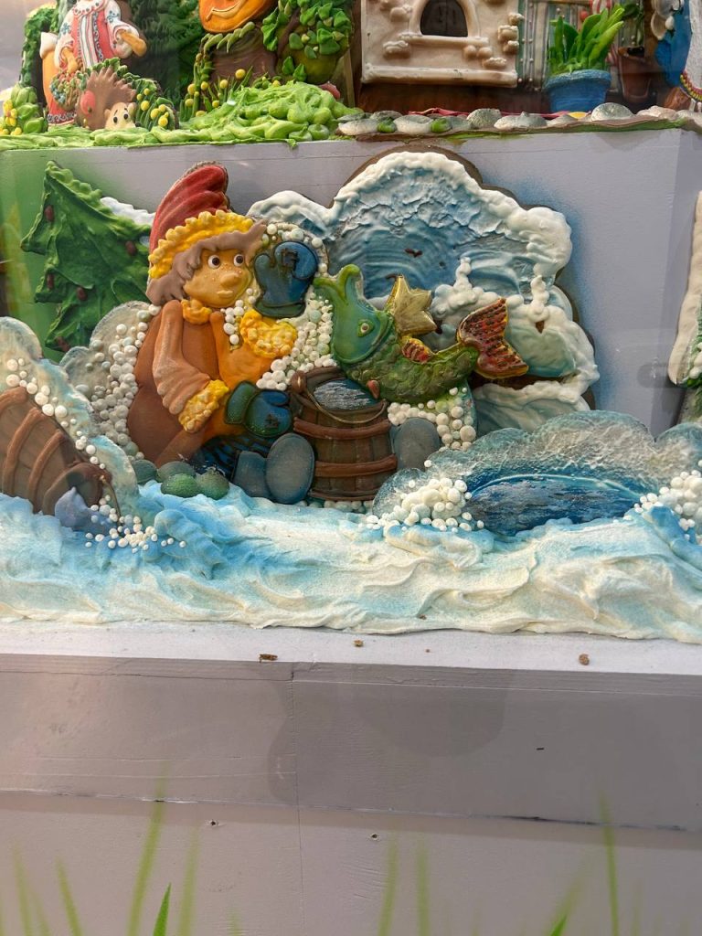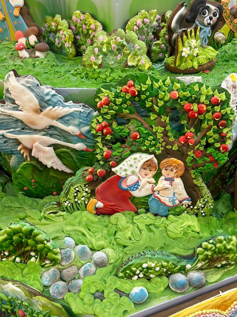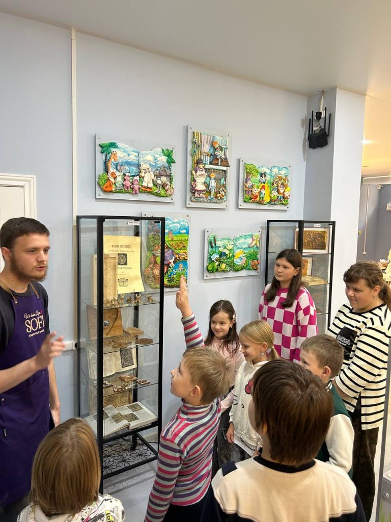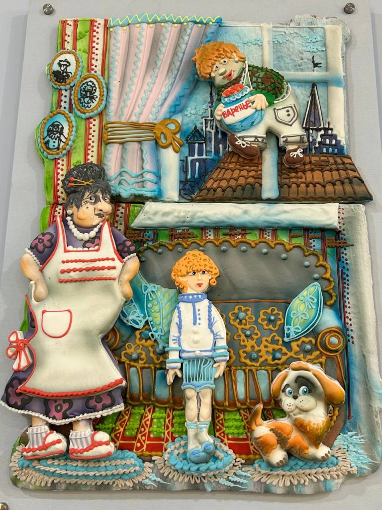 Пряничная Лавра, которая установлена в центре зала, впечатлила детей, и взрослых. Детям была проведена не только увлекательная экскурсия о любимом лакомстве, но и предоставлена возможность принять участие в мастер-классе по росписи пряников, попить чай со сладостями. Настоящая сладкая сказка!